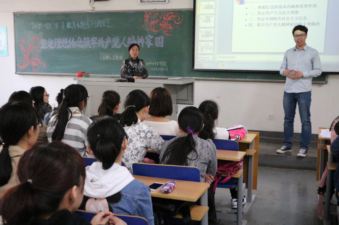 3月30日下午,学院党委副书记、副院长吴秀明在公教楼C309为学生党员作了题为《坚定理想信念 筑牢共产党员精神家园》的首场讲座。她从习近平书记“理想信念是共产党人精神上的‘钙’”的重要论述出发,从理想信念的基本内涵和重要作用、坚定共产主义远大理想、坚定中国特色社会主义信念、筑牢共产党人精神家园的主要路径等四个方面为学生做专题讲解。吴秀明结合党的历史和诸多烈士的生命轨迹,阐述理想信念的价值,告知学生“今天来之不易,我们都是信仰的受益者,也有责任成为信仰的坚守和传承者”。她分析现今的时代特征和不同年代人们的价值观取向,以理想动摇、信念滑坡的事例引发学生思考,重点讲述“在怀疑的时代依然需要信仰”,同时深入剖析学生群体中存在的不良现象,从理论和实践层面希望和要求学生端正入党动机,增强党员意识,自觉遵守党章。